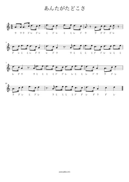 あんたがたどこさ 無料ピアノ楽譜